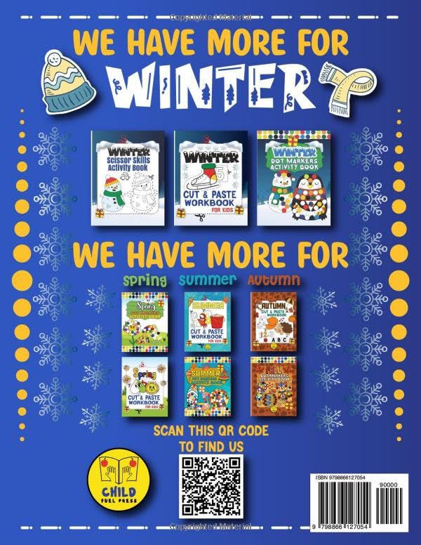 Unlock the wonder of the winter season for the young adventurers in your life with the "Winter Activity Book for Kids". This engaging and educational book has various activities, from coloring and scissor skills to word searches, math challenges, mazes, and more. This book offers a delightful way for kids to explore, create, and learn while enjoying the magic of winter.